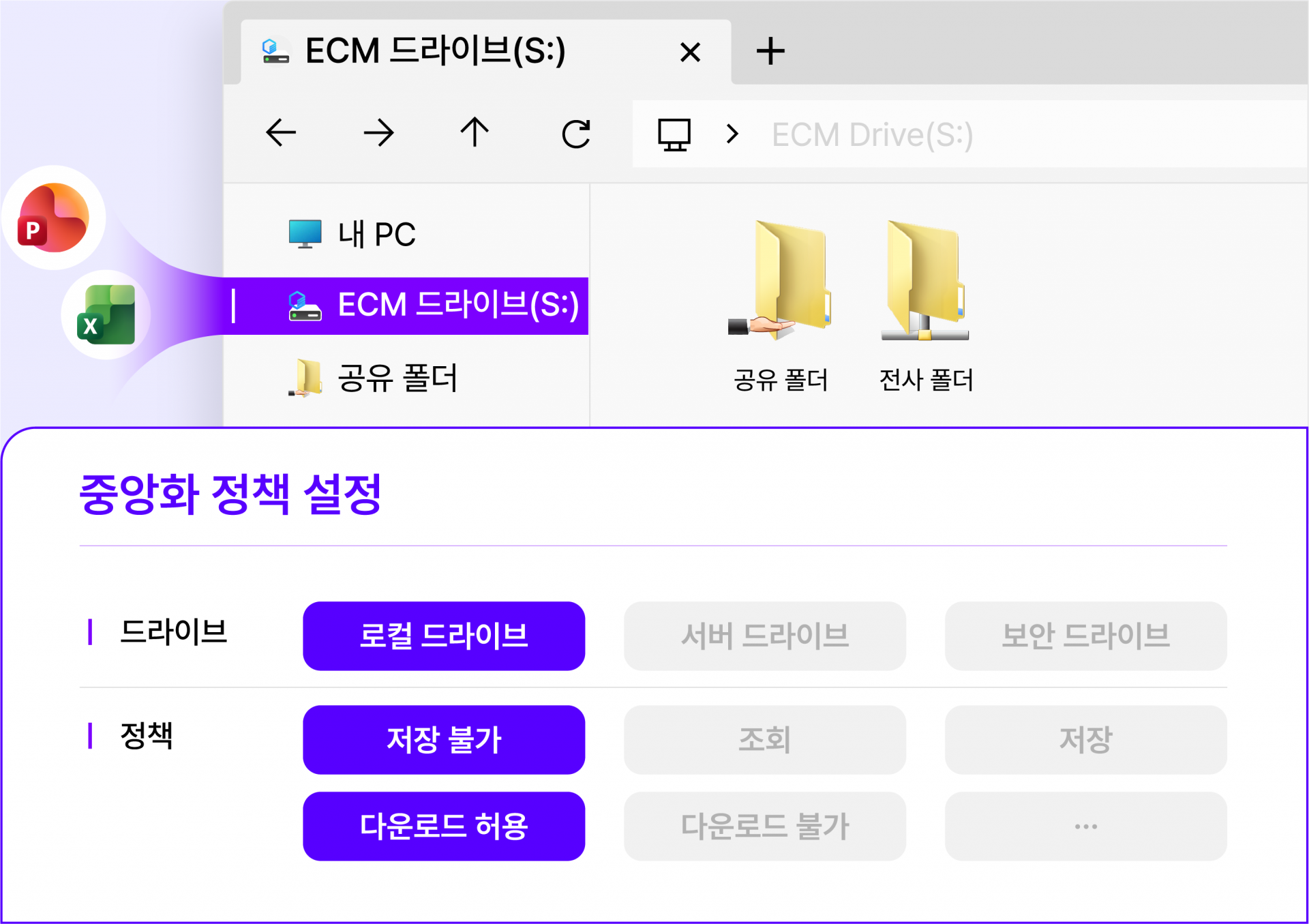 로컬 PC 저장 차단 및 중앙 서버 강제 저장