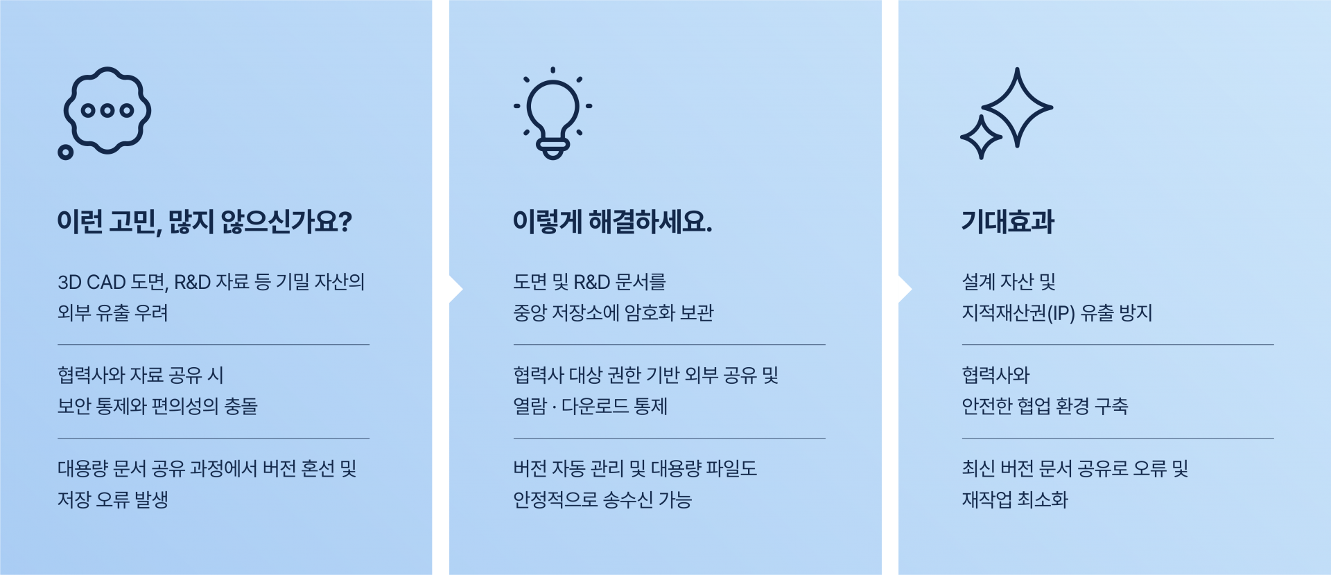비정형 데이터 증가, 재택근무 확산, 보안 위협 고도화로 기존 파일서버·NAS·클라우드 기반 문서 관리는 통제와 보호에 한계가 있습니다.