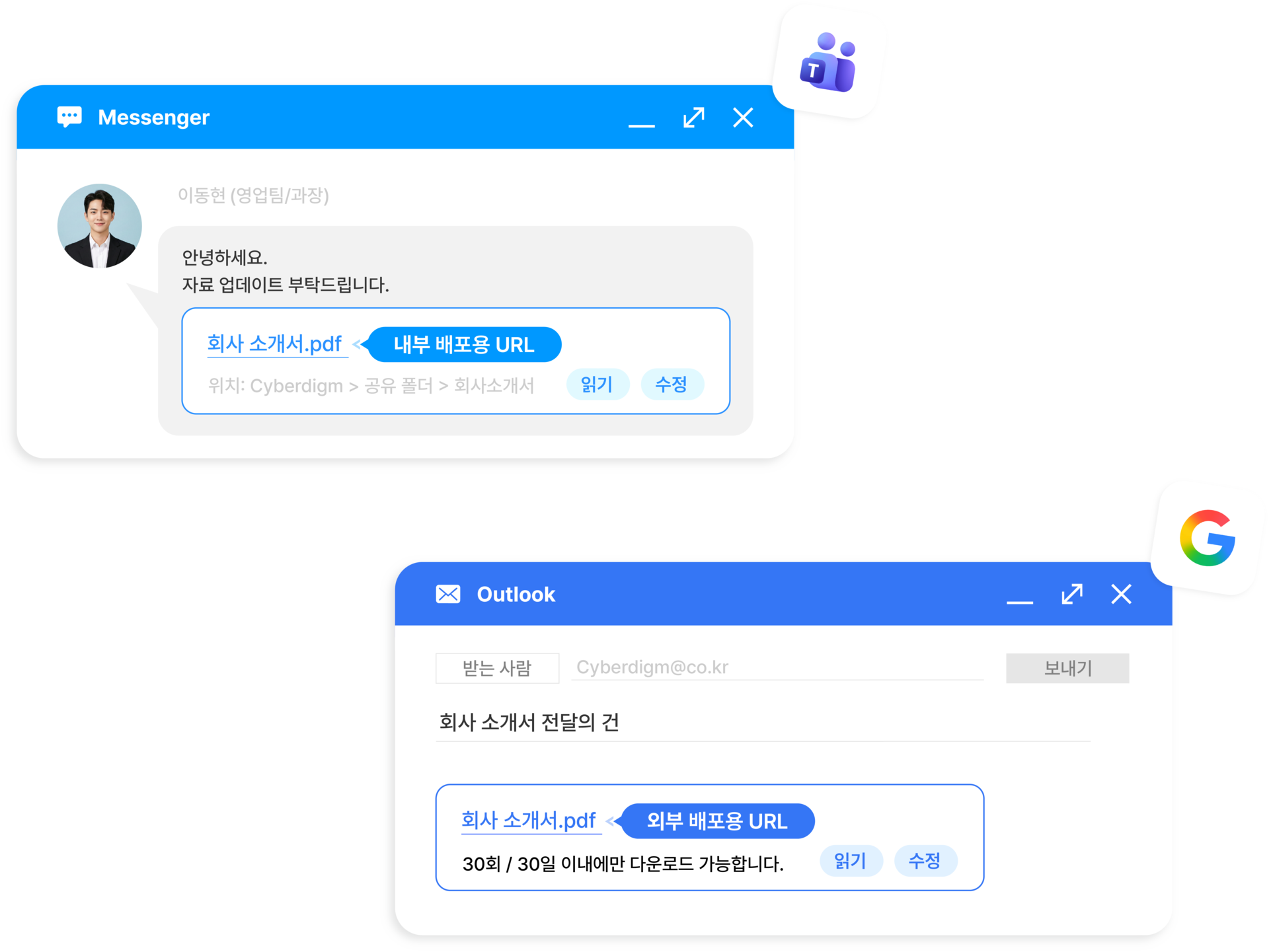URL 기반 문서 공유 l 내·외부 협업 시 문서 URL 공유를 통한 실시간 열람·편집 가능