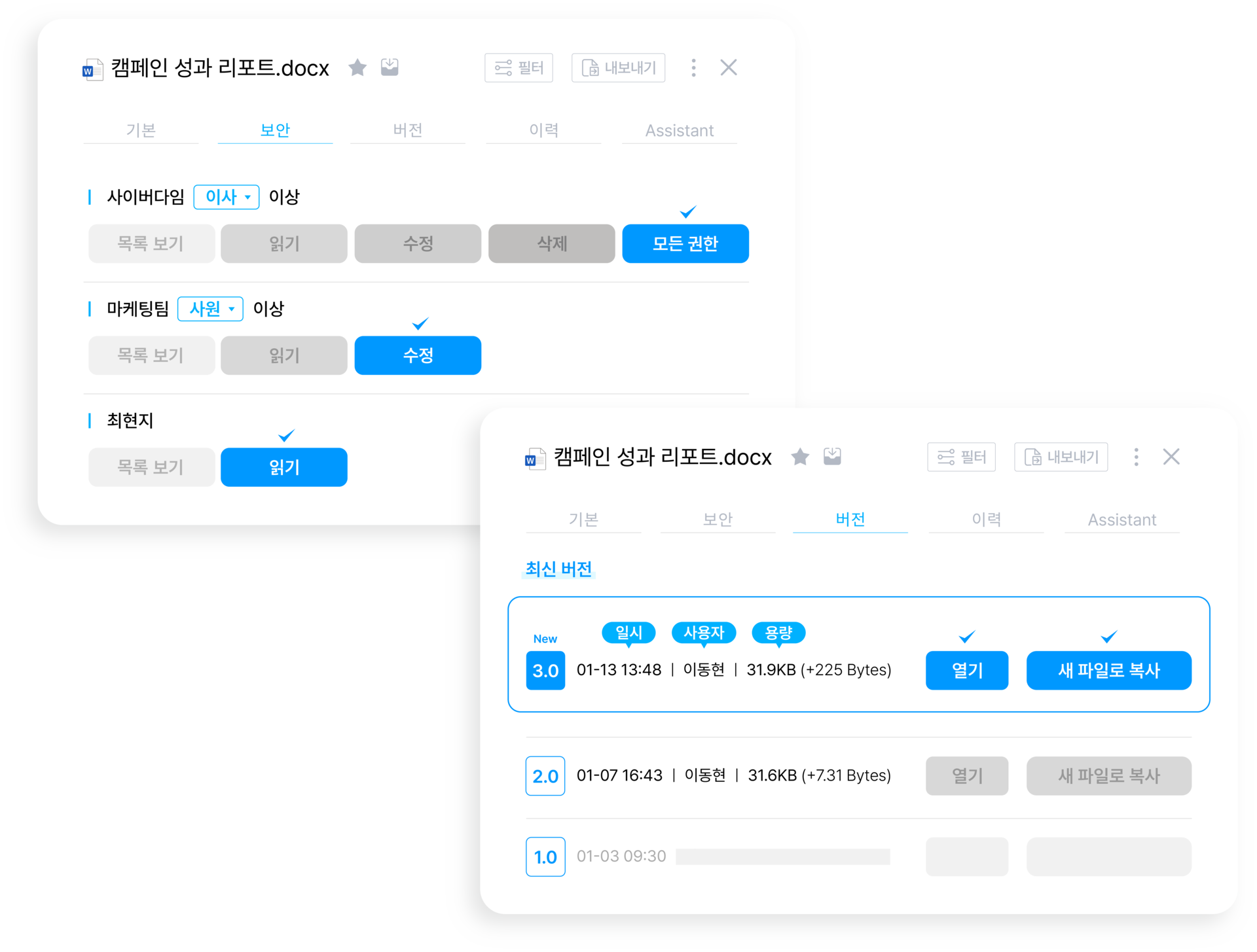 자동 버전 관리 l 사용자·직급·부서별 권한 설정으로 중요 문서 접근을 통제