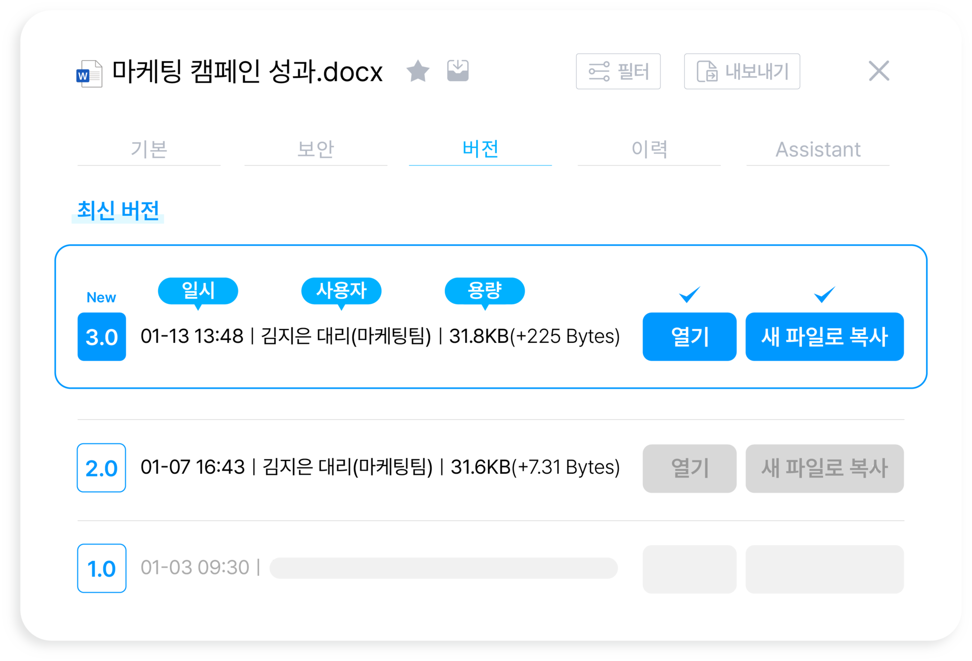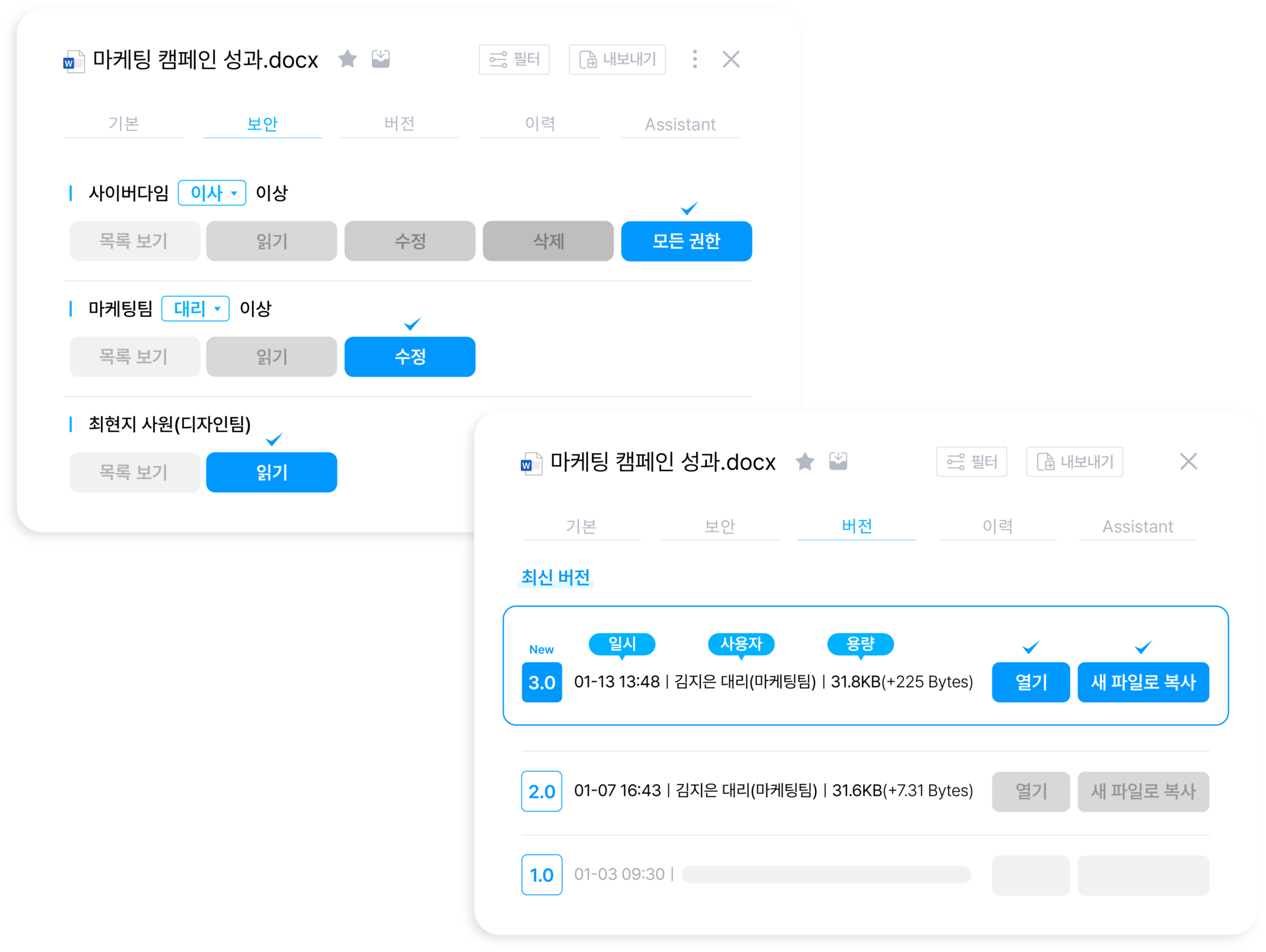 자동 버전 관리 l 문서 버전을 자동으로 관리해 언제든 이전 버전으로 손쉽게 복원 가능