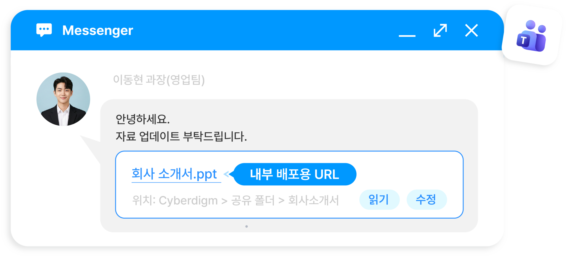 MS 팀즈와의 연동을 통해팀원 간 편리한 협업 지원