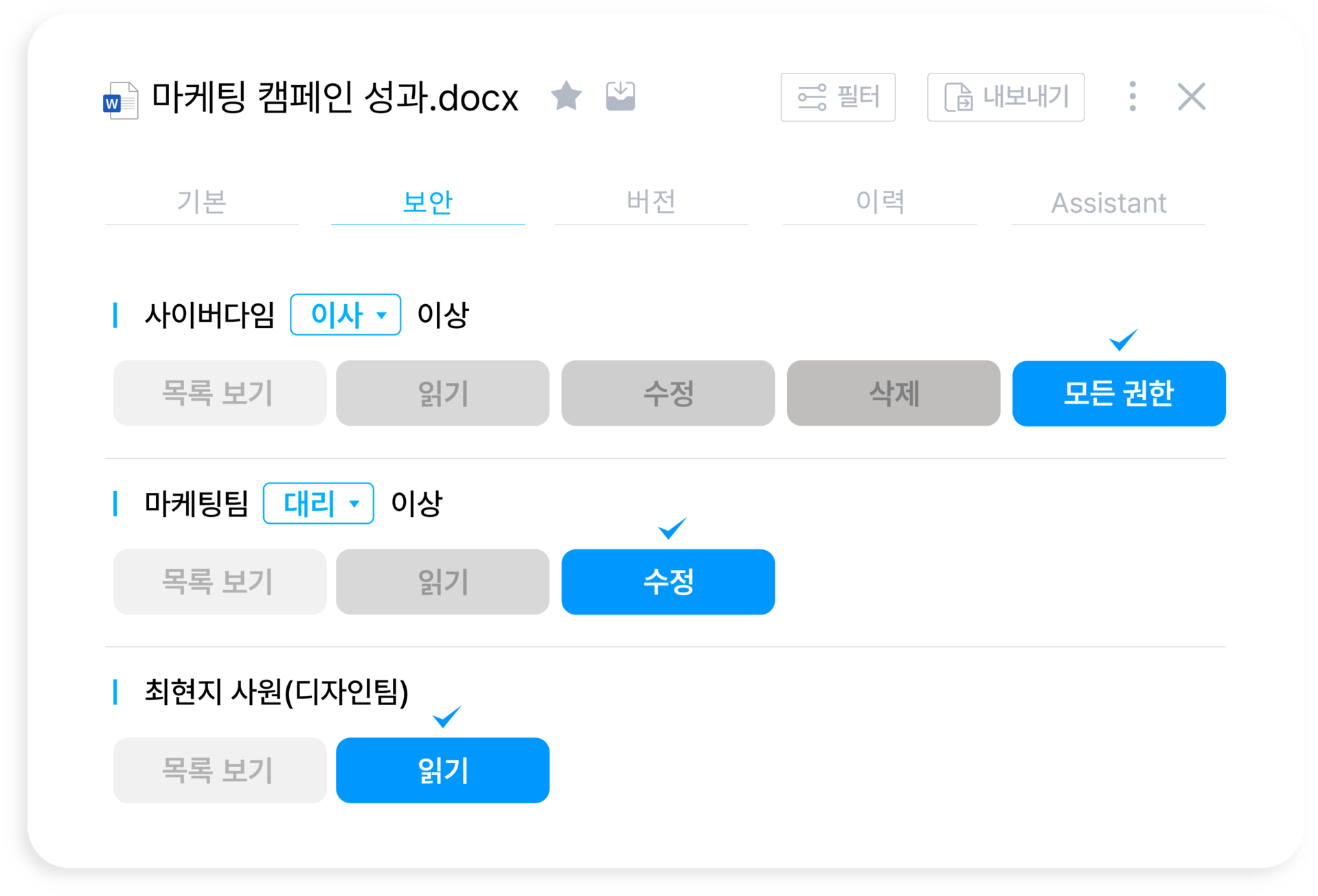 문서 접근 권한 설정사용자 직급, 부서별 권한 설정으로